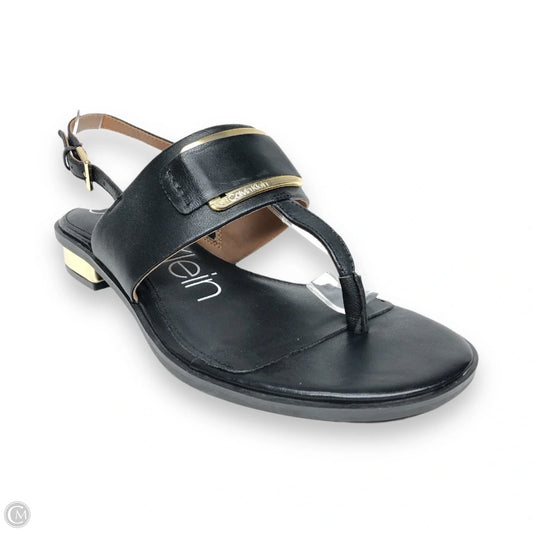Sandals Heels Kitten By Calvin Klein In Black & Gold, Size: 6.5