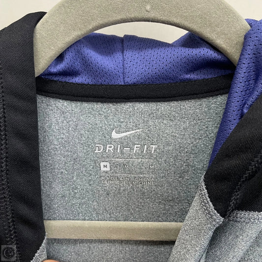 Athletic Top Long Sleeve Hoodie By Nike Apparel In Black & Grey, Size: M