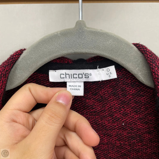 Sweater Cardigan By Chicos In Black & Red, Size: S