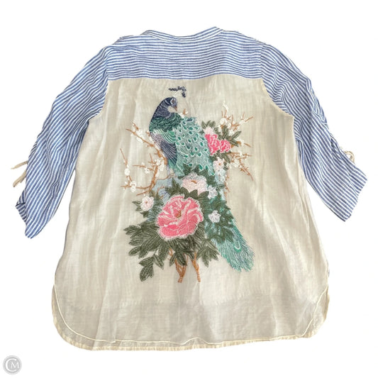 Top Long Sleeve By John Mark In Blue & Cream, Size: L