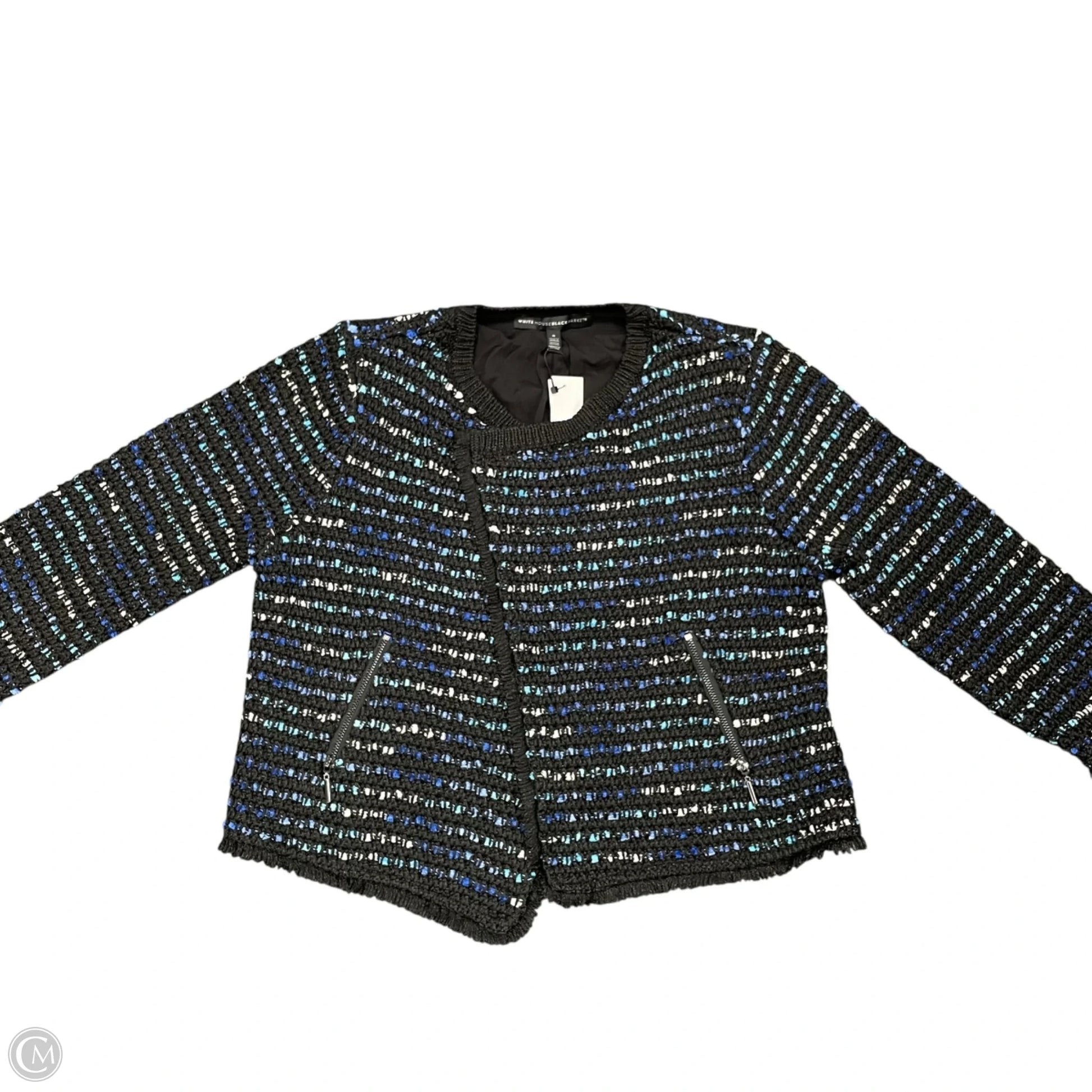 Wrap yourself in sophistication with this Black & Blue Blazer from White House Black Market. The tailored fit and luxurious fabric exude elegance, while the timeless color combination adds a touch of class. Embrace comfort and style effortlessly. Sizes: S.