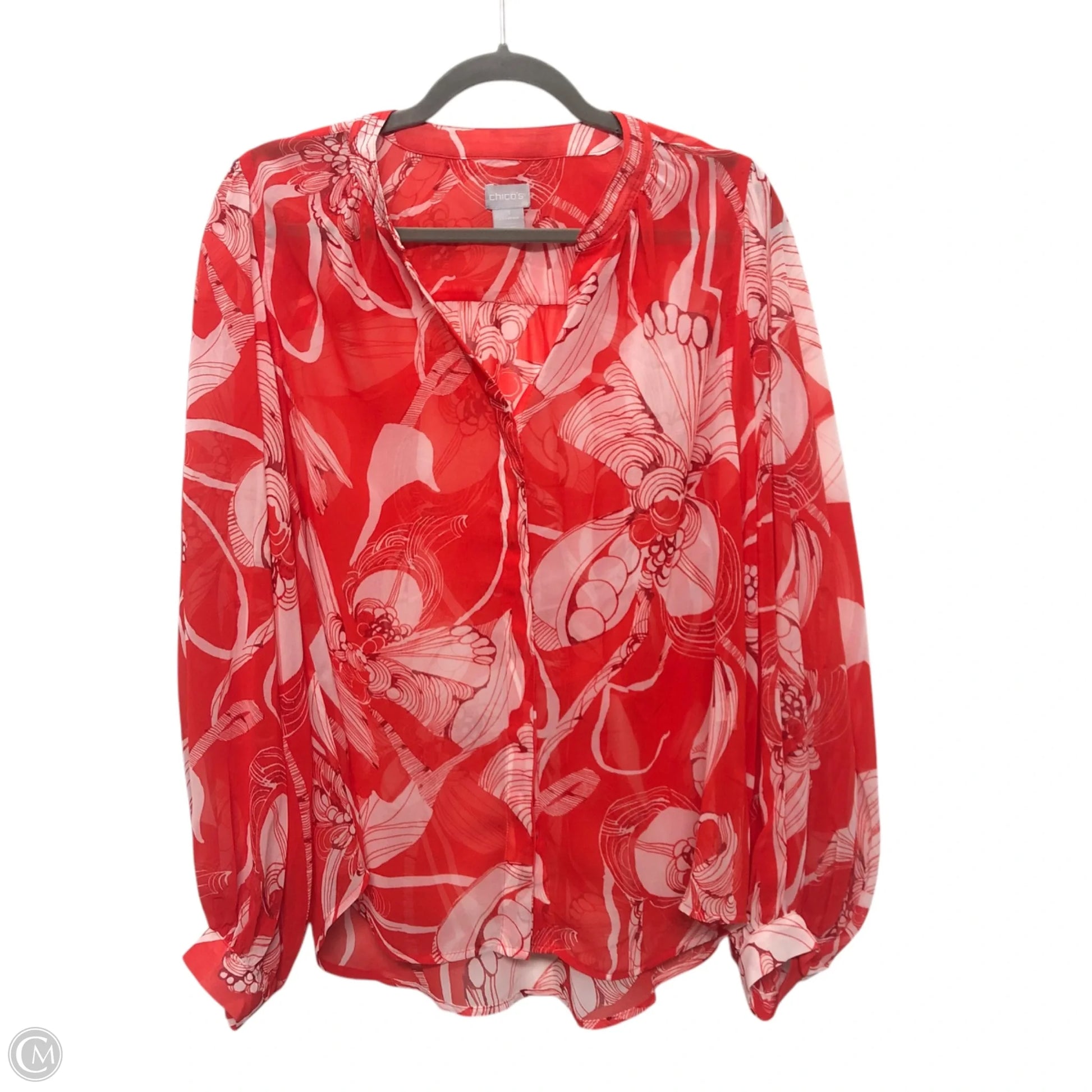 Blouse Long Sleeve By Chicos In Red, Size: M