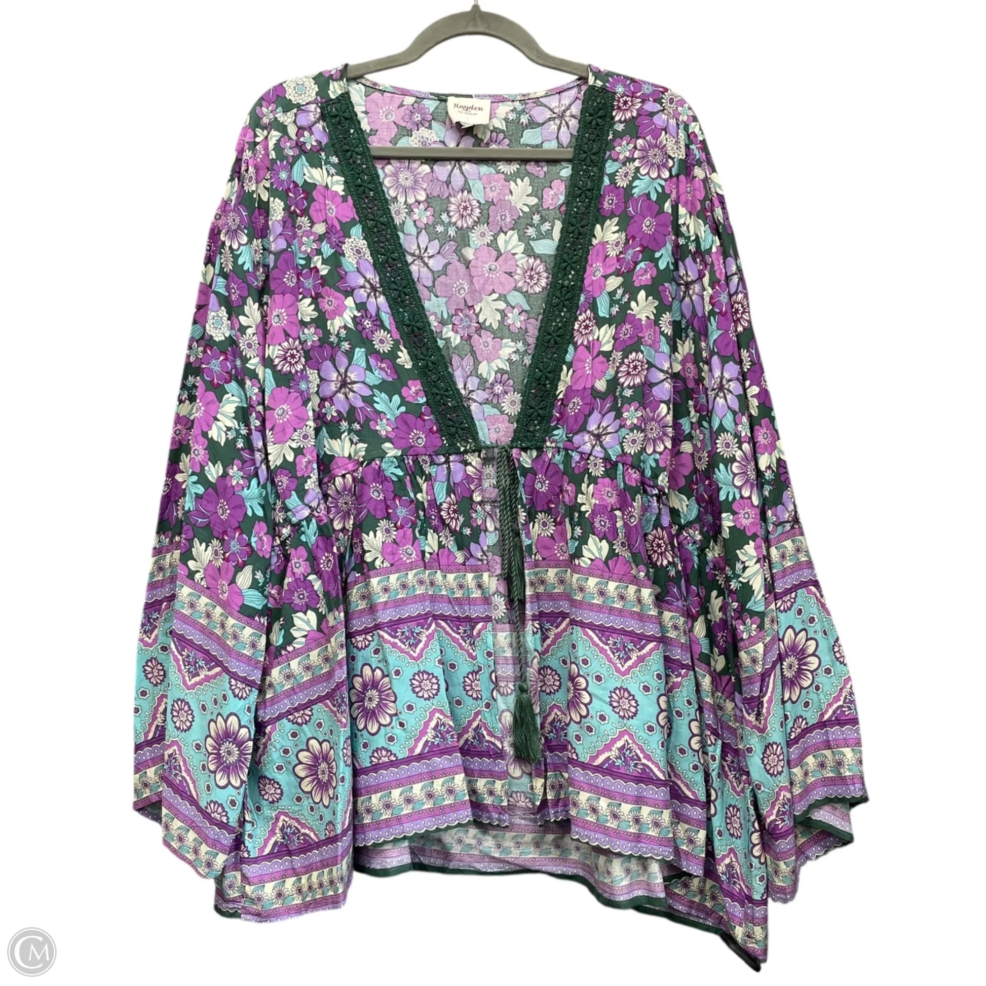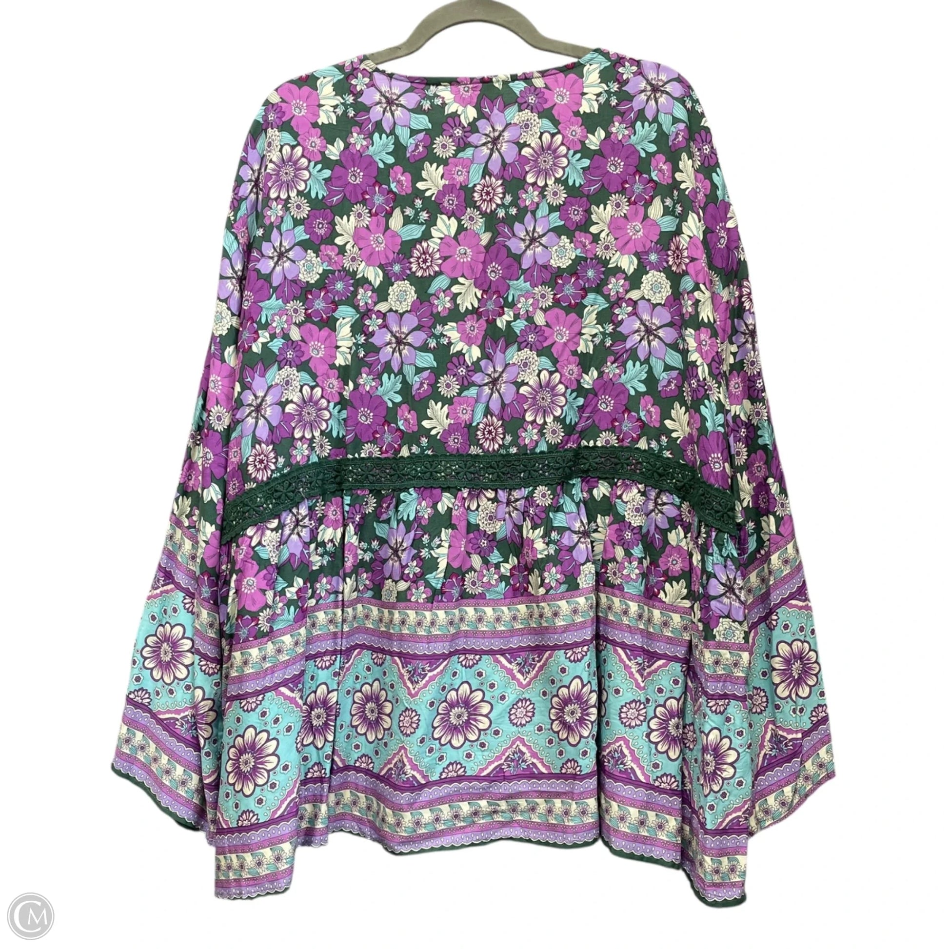 Blouse Long Sleeve By Hayden La In Green & Purple, Size: 2x