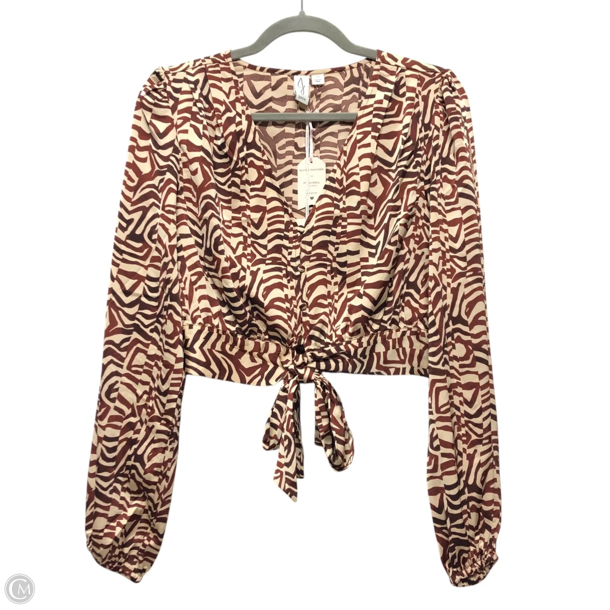 Blouse Long Sleeve By J By Joie In Brown & Cream, Size: S