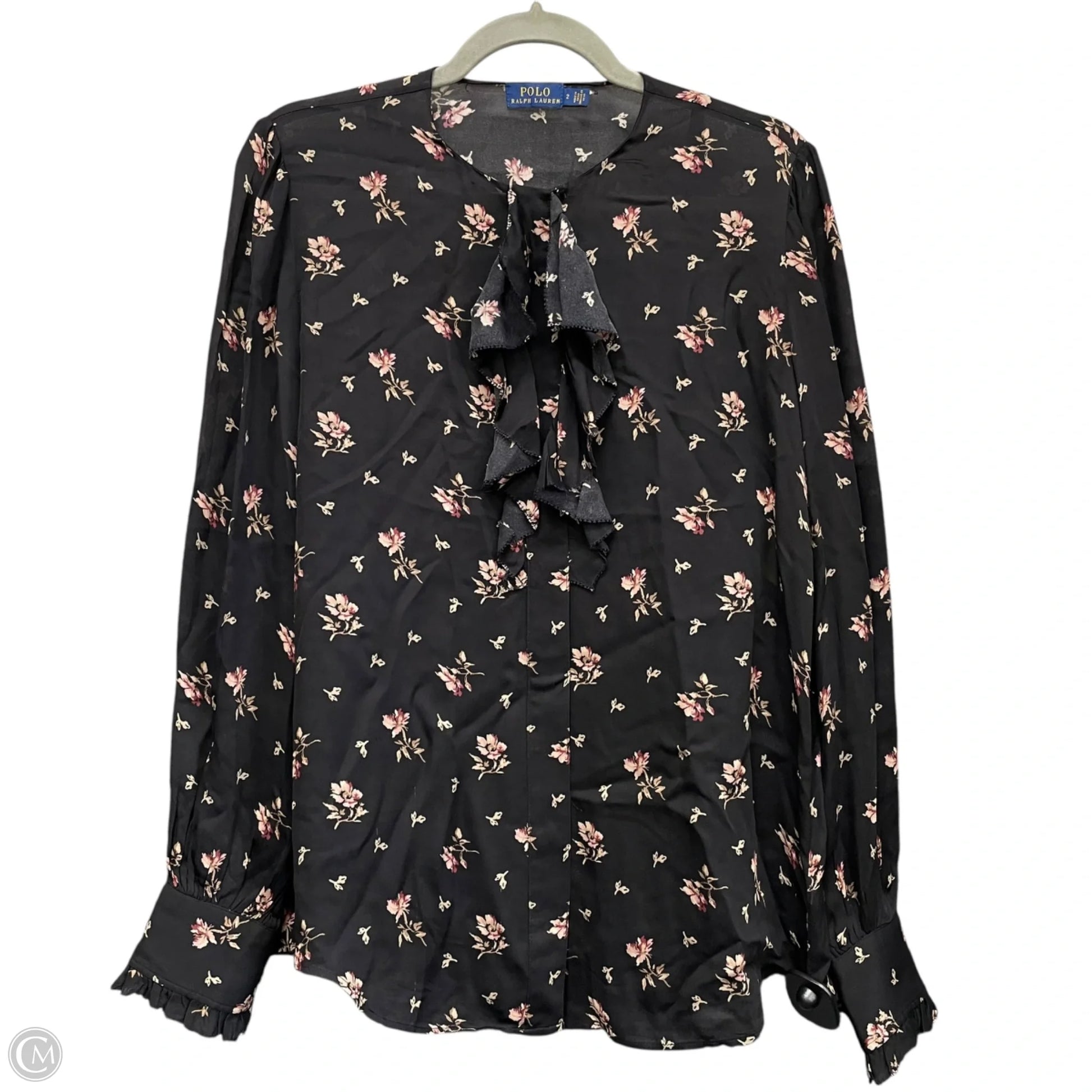Blouse Long Sleeve By Polo Ralph Lauren In Black, Size: 2