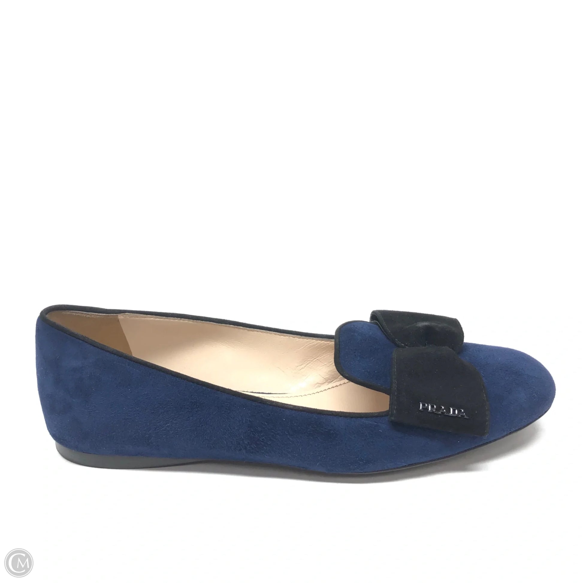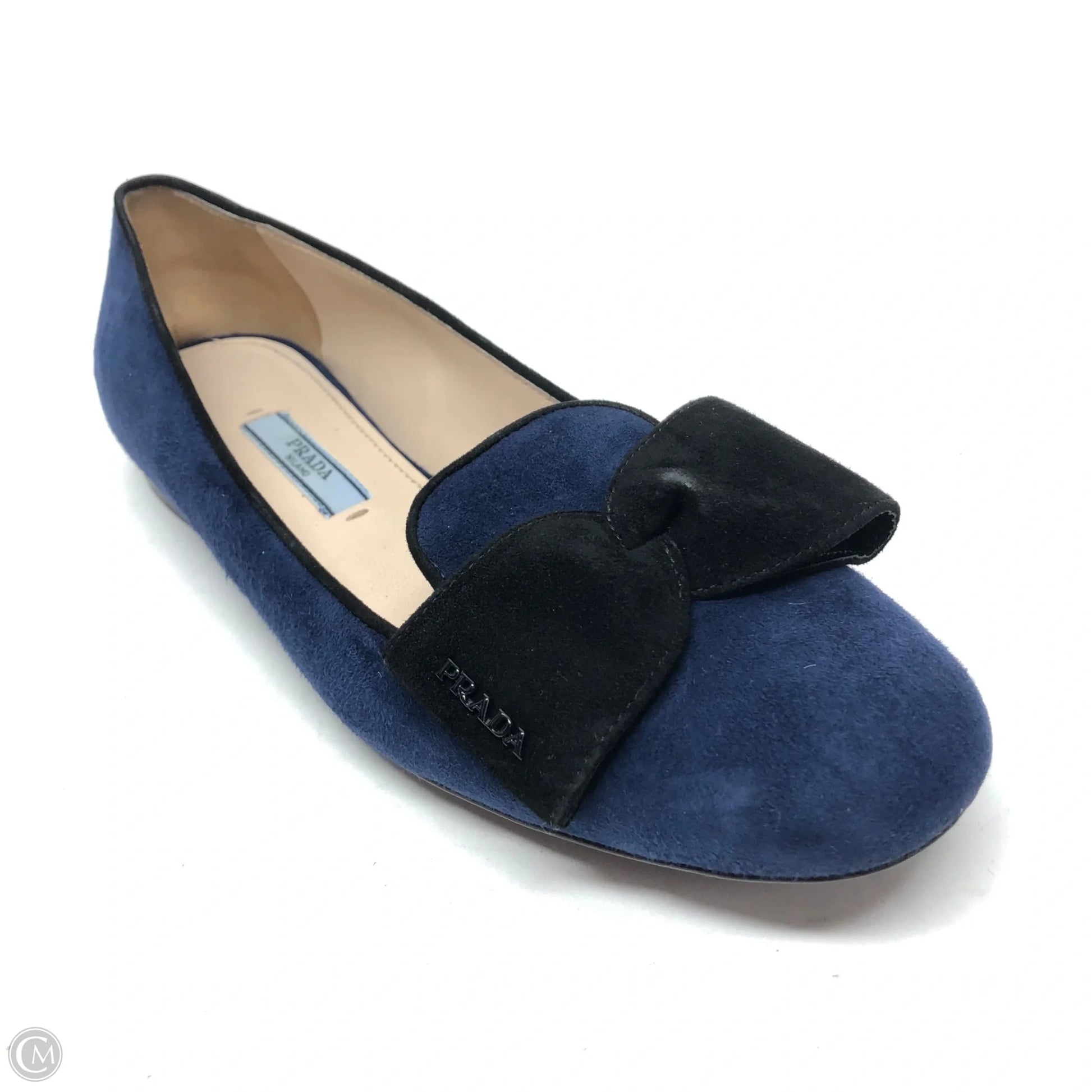 Shoes Luxury Designer By Prada In Black & Blue, Size: 5.5