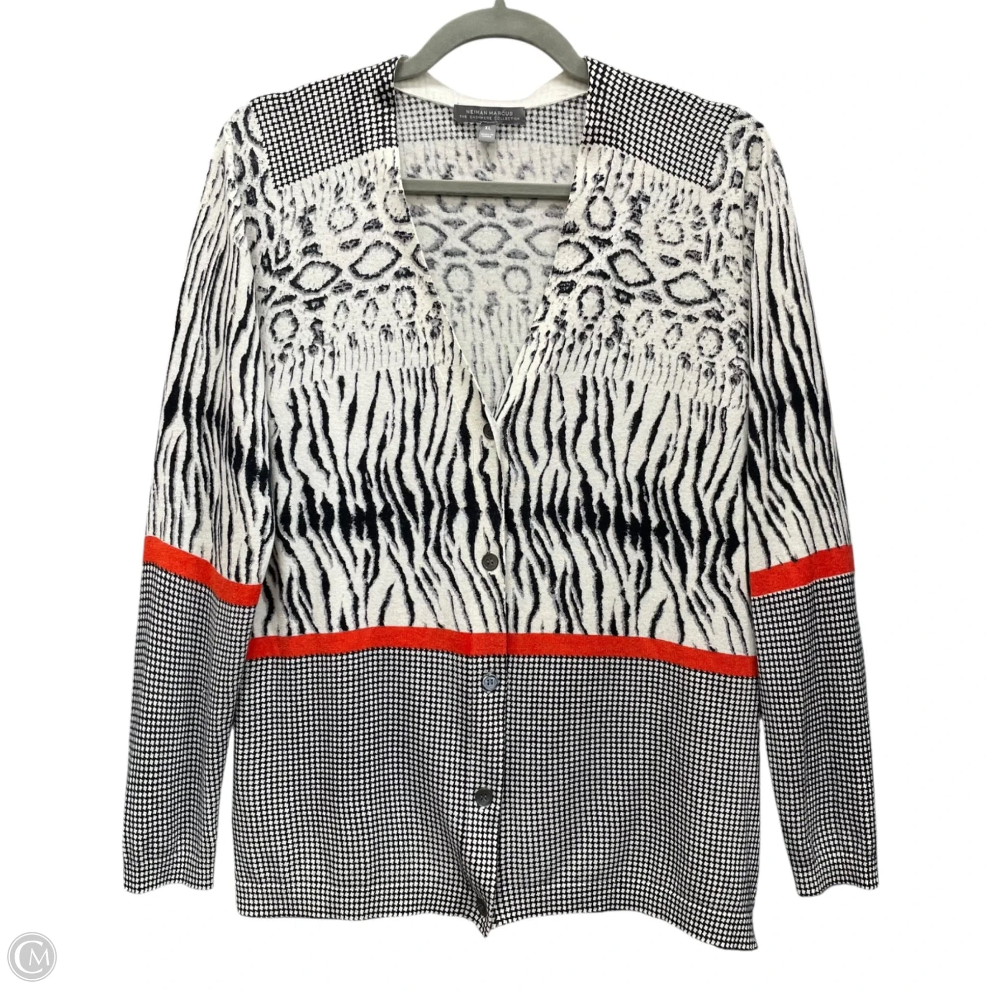Sweater Cardigan Cashmere By Neiman Marcus In Black & White, Size: Xl