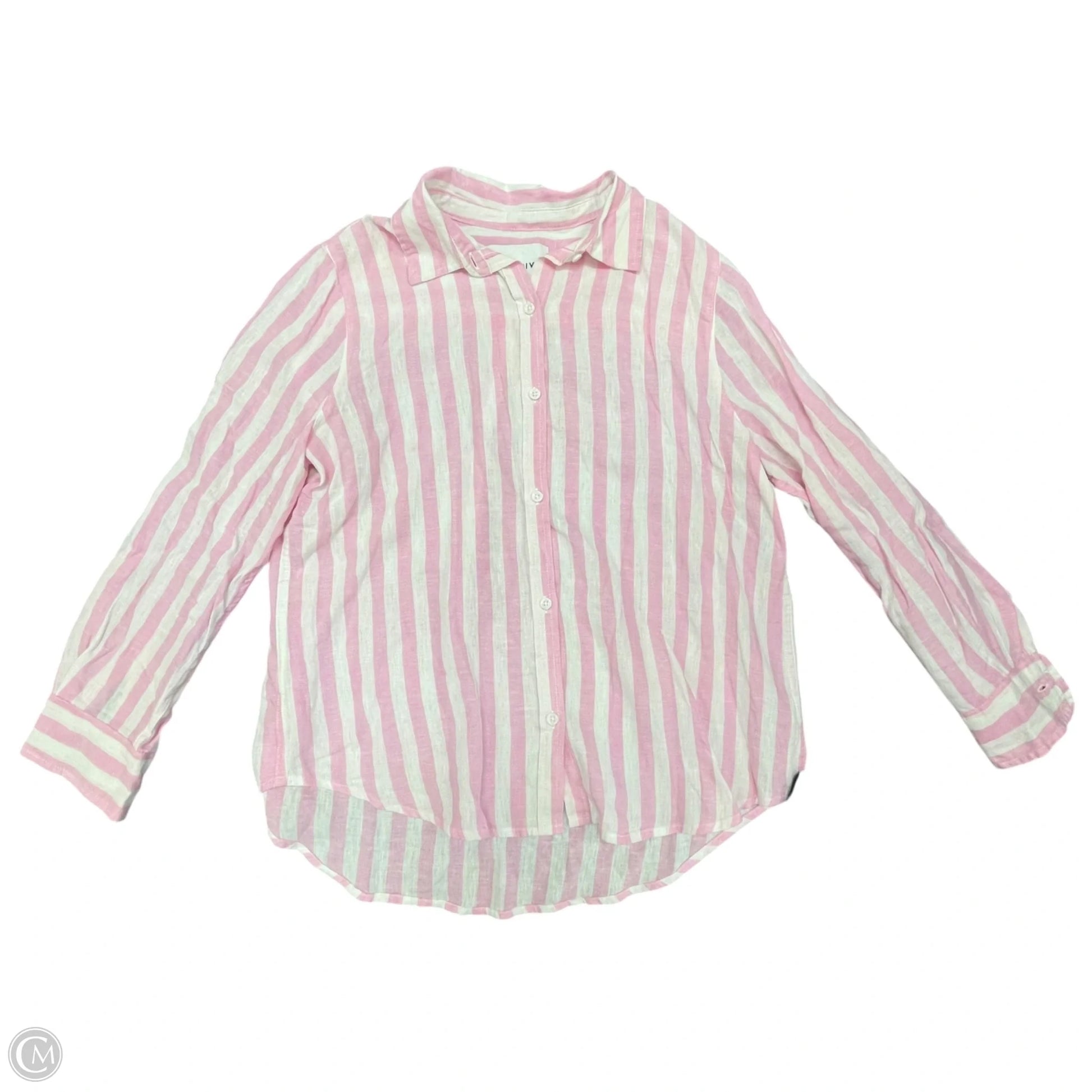 Top Long Sleeve By Clothes Mentor In Pink & White, Size: L