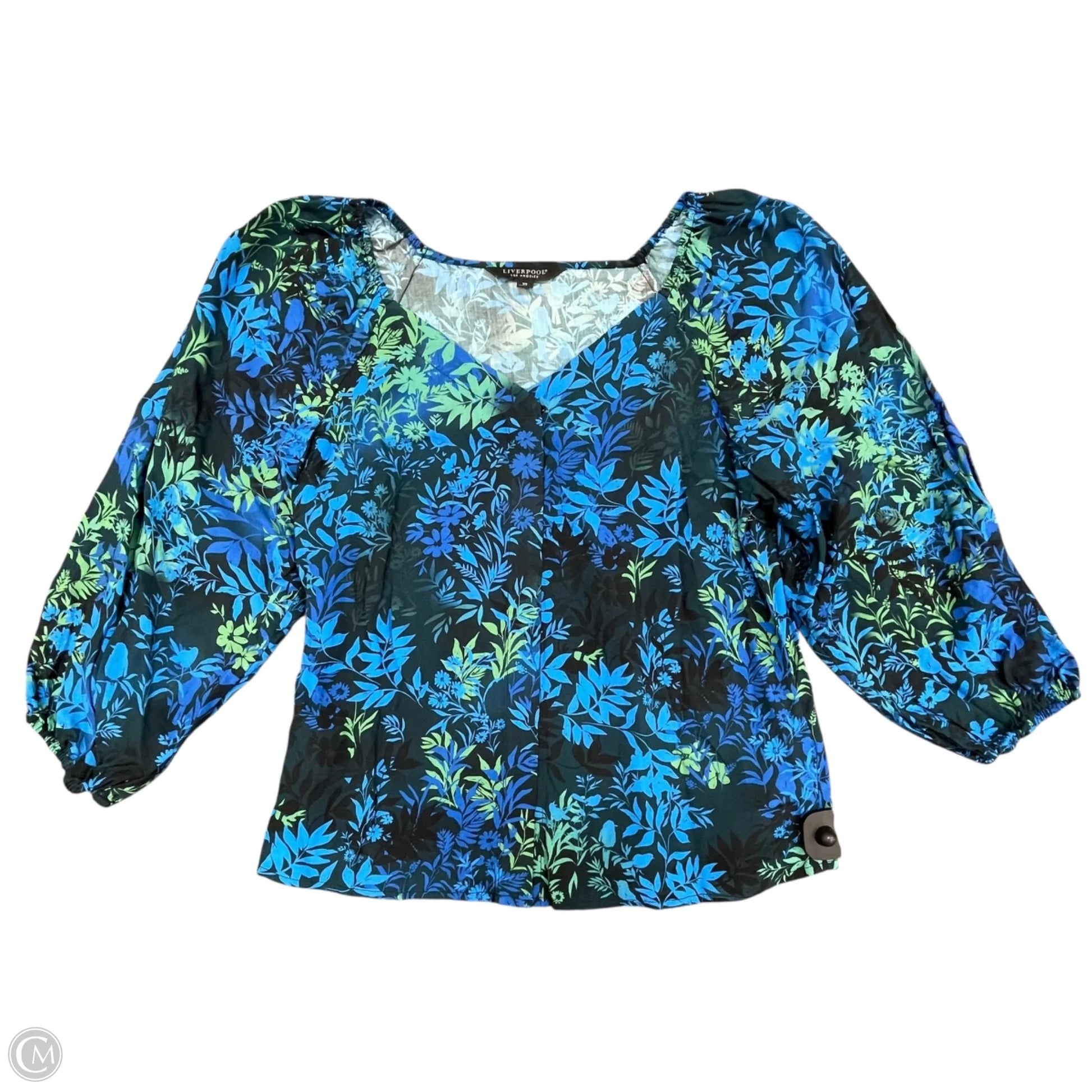 Top Long Sleeve By Liverpool In Blue & Green, Size: Xs