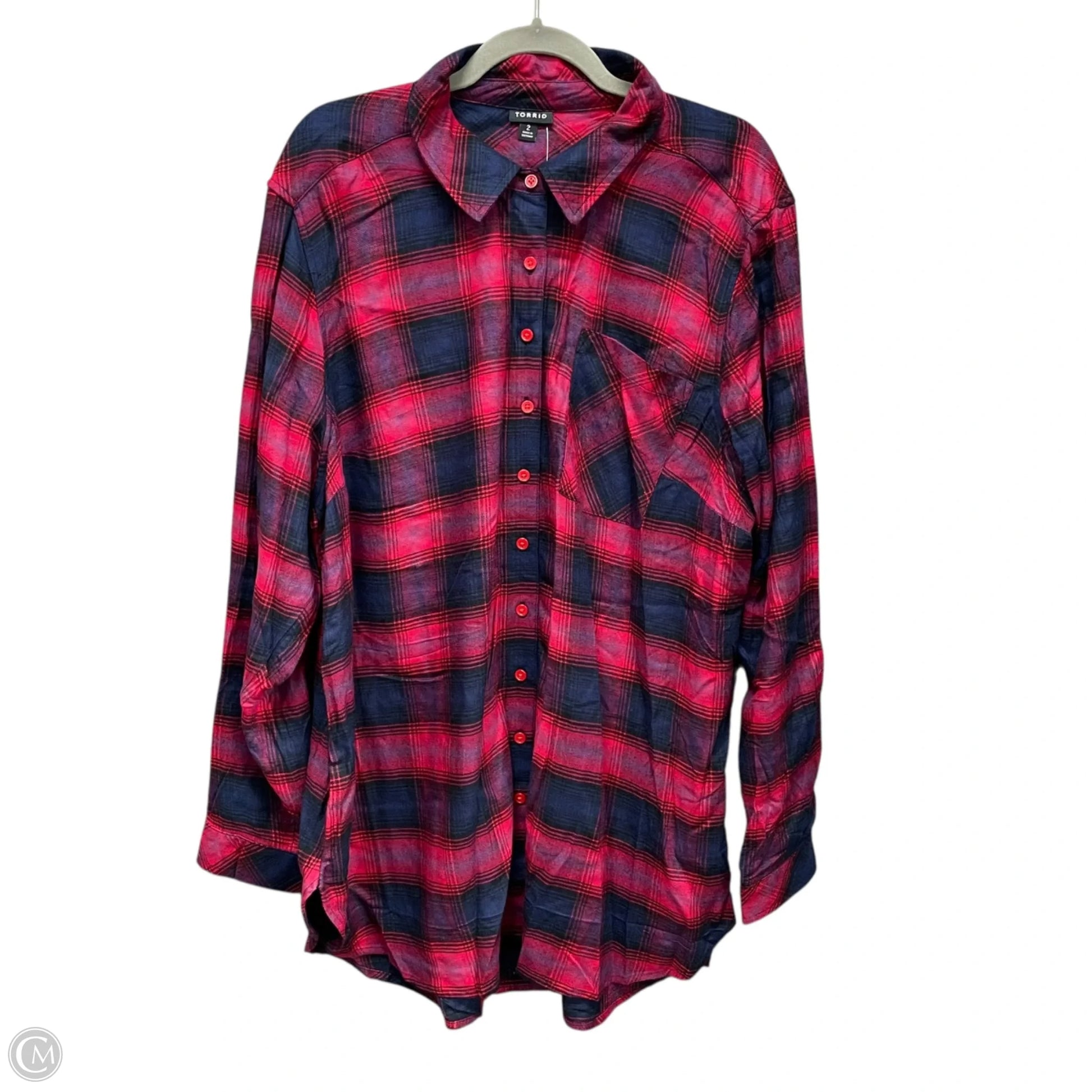 Top Long Sleeve By Torrid In Blue & Red, Size: 2x