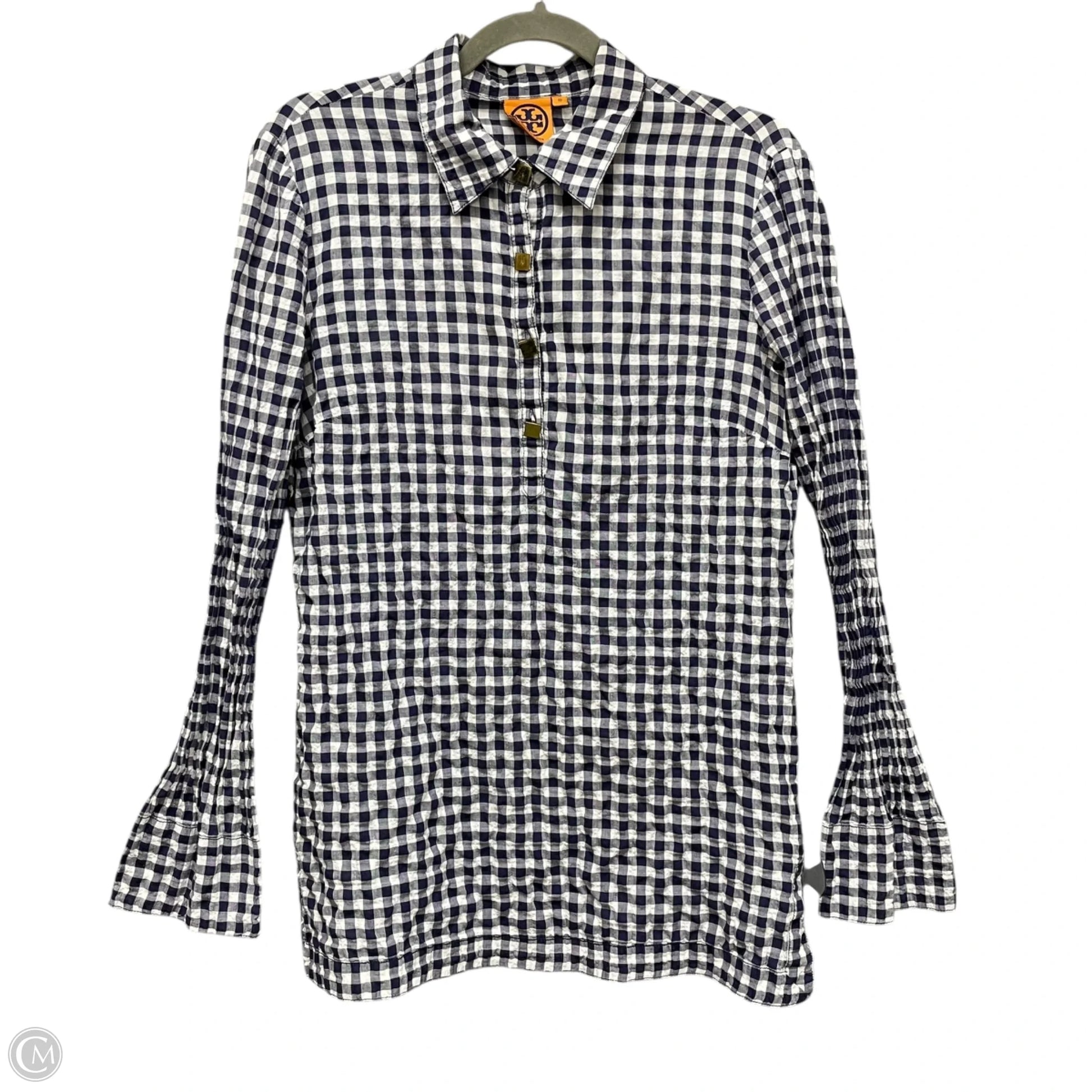 Top Long Sleeve Designer By Tory Burch In Blue & White, Size: 10