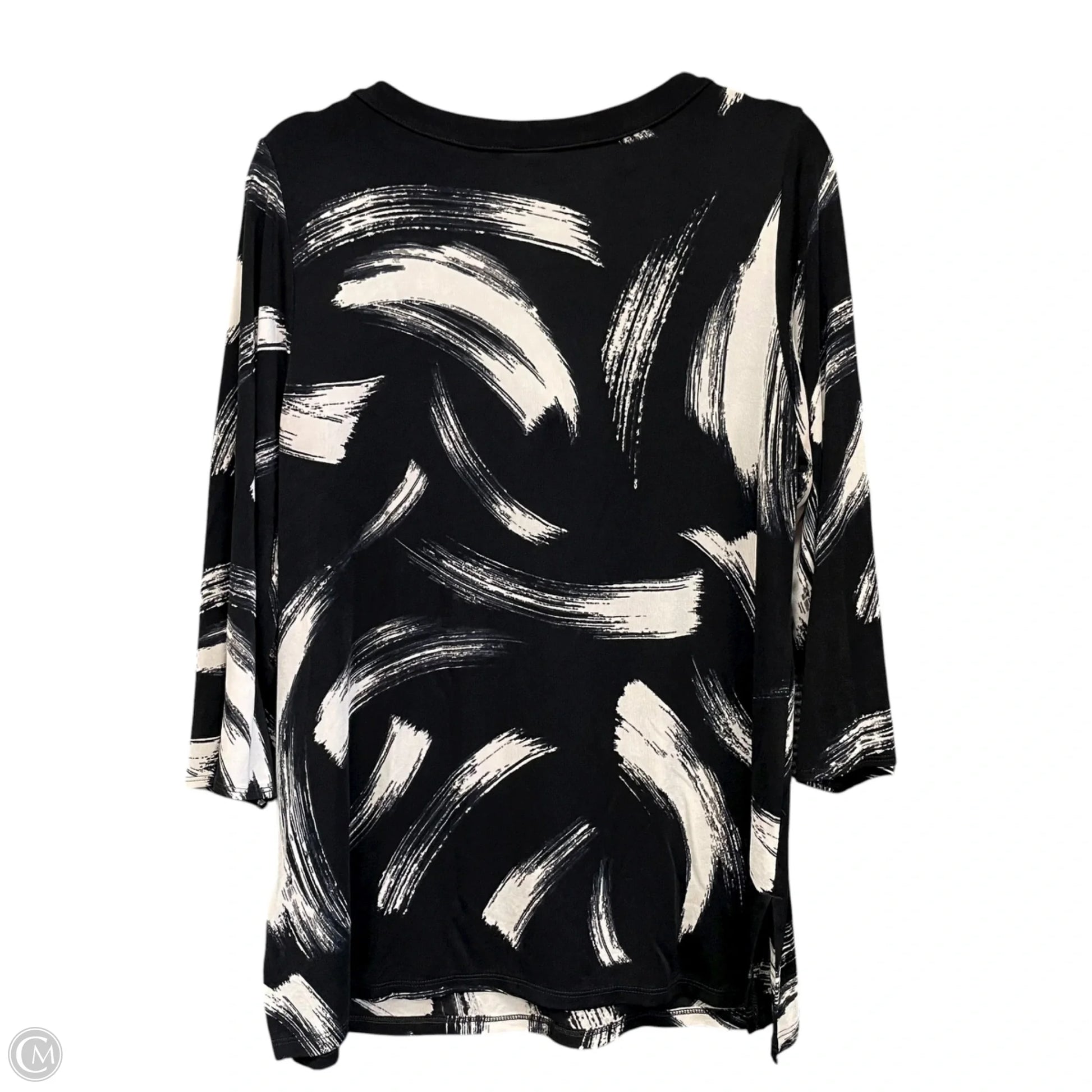 Tunic 3/4 Sleeve By Chicos In Black & Cream, Size: 12